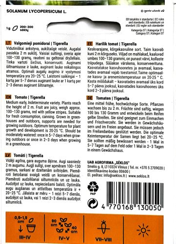 Tomato Tigerella thrives in fertile, well-drained soil and enjoys full sun. It can be grown outdoors in a sunny, sheltered spot or under glass in greenhouses and polytunnels. With its unique looks and rich taste, Tigerella is perfect for gardeners seeking both style and substance in their tomato crops.