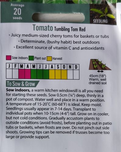 A compact, trailing cherry tomato variety ideal for hanging baskets, containers and window boxes. Tumbling Tom Red produces early and abundant crops of sweet, juicy fruits that cascade beautifully over the sides of pots.