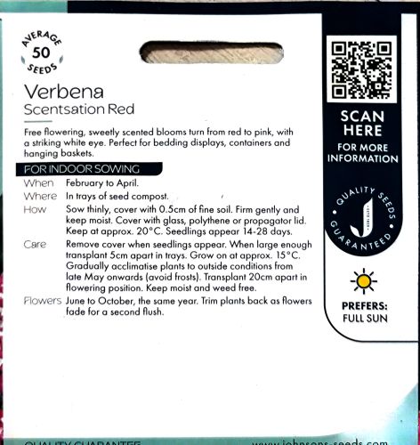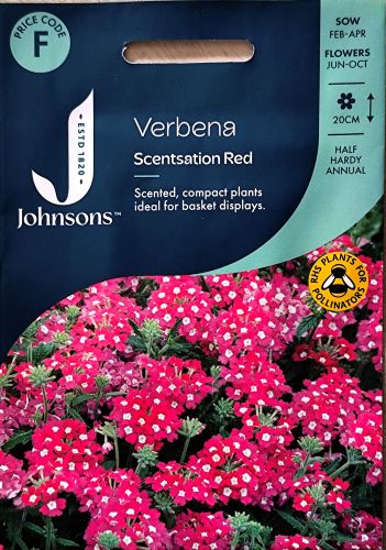 Verbena Scentsation Red forms neat mounding plants that bloom freely from early summer into autumn. The flowers are an intense glowing red held in rounded clusters above fresh green foliage. Plants stay compact yet spreading making them ideal for containers window boxes and mixed summer plantings. This variety is valued for its strong colour impact steady flowering and reliable garden performance.