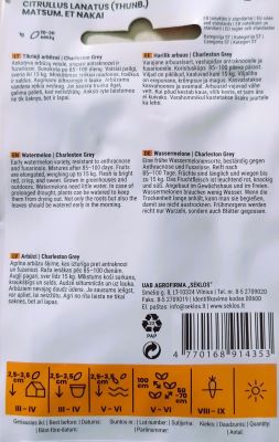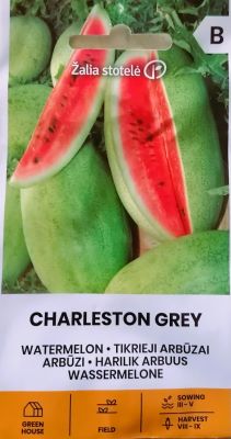 This large watermelon has elongated fruits with a thick grayish green rind and sweet tasting bright red crispy flesh.